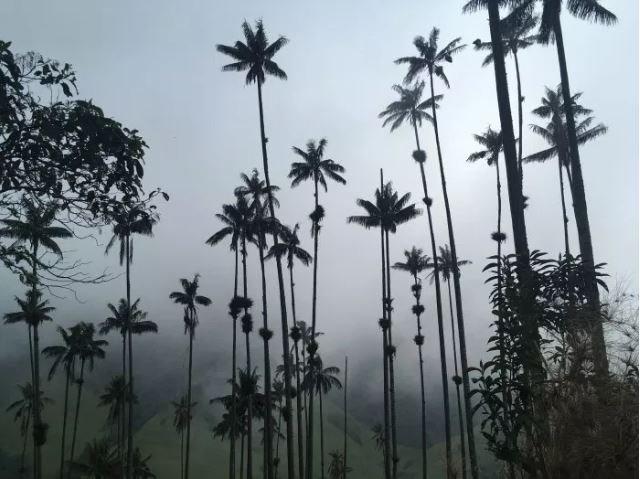 Gelukkig is het de komende dagen zonnig, droog en bovendien een heerlijke temperatuur en ik vertrek dan ook snel richting Valle de Cocora. Om half acht zit ik in een jeep en om acht uur start ik de wandeling waar zo’n 6 uur voor staat. En wat is het mooi!! Overal waar je kijkt zie je de mega hoge palmbomen waar de vallei om bekend staat, tot wel 60 meter hoog.