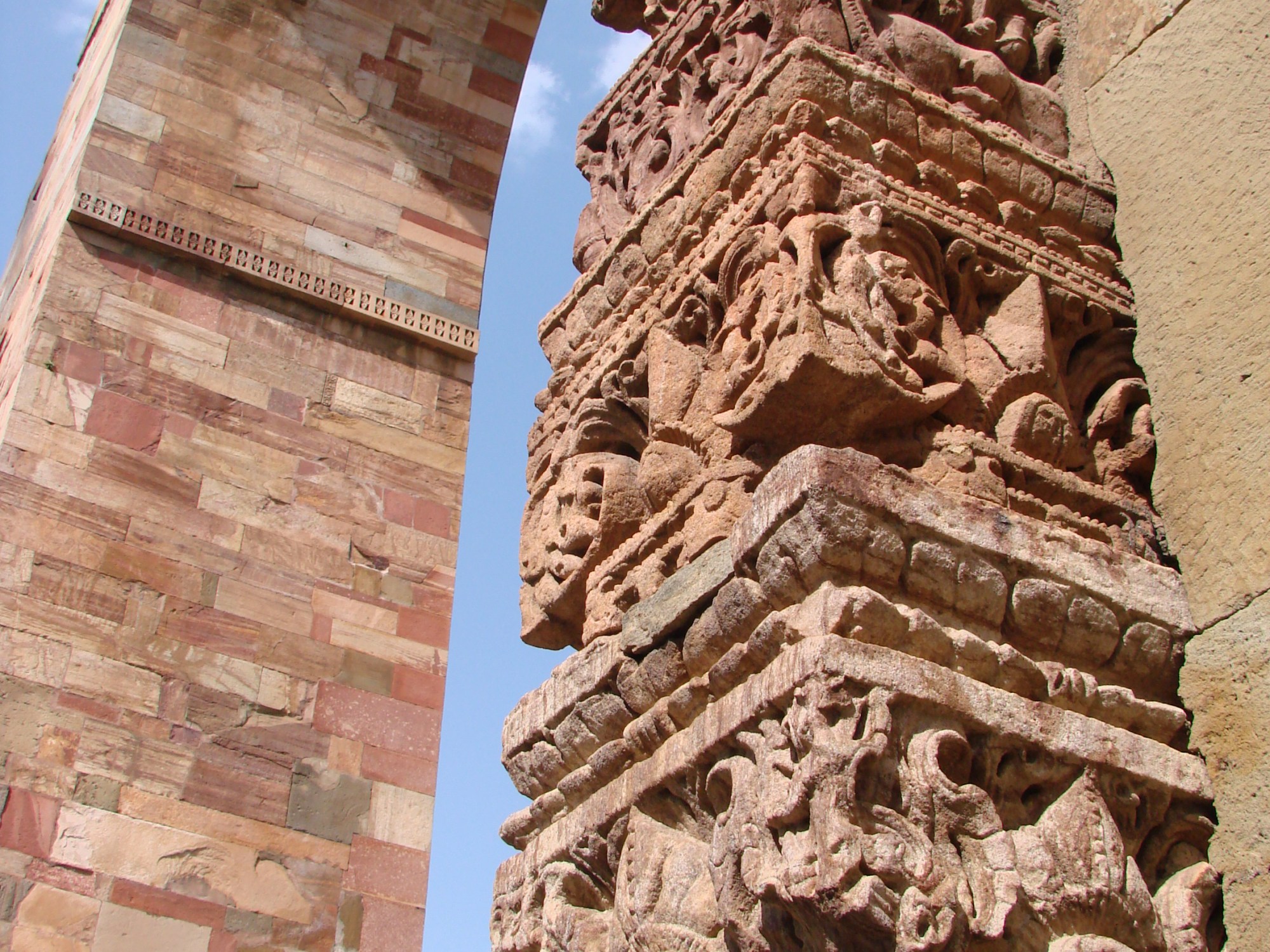 Na een kort nachtje en enige besluiteloosheid stap ik in een riksja richting Qutb Minar complex, nu in buitenwijk van Delhi maar ooit het hart van de moslim stad. De Qutb Minar zelf is een indrukwekkend hoge en fijn bewerkte toren, volgens zeggen nog steeds de hoogste (stenen) toren van India. Het is zondag en daarom flink druk met Indiërs. Binnen 5 minuten wist ik weer wat dat betekent; heel vaak op de foto gaan, gevraagd en ongevraagd. En aangezien iedereen aldaar een smart phone had was het nog een tandje meer tov aantal jaren terug. Met families of stelletjes leverde dat soms nog wel een grappig gesprek op (”U staat nu met een belangrijke Bollywood actrice op de foto, binnenkort is ze ook in de UK bekend”, aldus haar trotse echtgenoot), echter al die opgeschoten pubers durven niets te zeggen, behalve dan vragen of ik op de foto wilde. Grappigste was een man die vroeg om ik met hem op de foto wilde en net toen hij z’n toestel aan een vriend wilde geven en een stoere pose aannam, belde z’n vrouw. Of ik even wilde wachten want dat gesprek moest wel aangenomen worden, om vervolgens in drievoud met die lange Nederlandse vereeuwigd te worden. Of eigenlijk die lange ietwat bezwete Nederlandse, want het was slechts 36 graden in de schaduw. Zijn vast allemaal hele charmante foto’s geworden.. Ik had ook zo’n medelij met al die meisjes van bewaking, in vol ornaat liepen ze daar in de zon rond, snapte trouwens niet precies waarom er daar zoveel van moesten zijn. Ook zij wilden al giechelend op de foto…