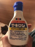 ‘s Avonds presteer ik het nogmaals om te verdwalen, m’n richtingsgevoel laat me flink in de steek, gelukkig is Japan super veilig, dus in je eentje in het donker dwalen lijkt vooralsnog geen probleem. Wel een probleem was het stoeprandje wat ik over het hoofd zag, ik wilde nog even snel een sprintje trekken om het groene voetgangerslicht mee te pikken en ja hoor, ik lag weer eens languit. Elegance isn’t my second name. Ondanks de toch dikke jas flinke schaafwonden, ook de telefoon bleef helaas niet ongeschonden (ketjing, kassa), maar goed, had altijd erger gekund denk ik maar. Niets gebroken en onderstaand flesje bleek inderdaad desinfectiemiddel te zijn. Althans, het prikte.