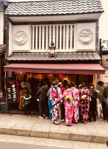 Ik neem verschillende variaties, rauw met ei als een soort sushi en een paar stukjes gebakken. De chef raad als laatste aan een stukje met relatief veel vet te nemen. Dit eet je dan met azijn. Nu heb je wel eens van die elastiek achtige stukjes vet, maar dit smolt echt op je tong. Kortom, de schaafwonden deden opeens minder pijn. Ook het feit dat ik geen geisha had gezien – geen ‘echte’ dan – ondanks dat ik toch denk ik wel door elk straatje van Gion gedwaald had, kon gerelativeerd worden.