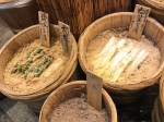 Daarnaast vond ik het Philosopher’s Path een leuke route, alleen al voor de naam! Nishida Kitaro, een Japanse filosoof uit de 20ste eeuw, zou het pad dagelijks hebben bewandeld als onderdeel van zijn meditatie proces. Je kunt maar een greintje oppikken van zijn wijsheid en rust dacht ik zo… Gezien de vele kersenbloesem bomen langszij schat ik zomaar in dat het hier in het voorjaar een stuk minder rustig is maar nu, ‘s morgens vroeg, vond ik het heerlijk. Twee km slenteren langs een klein kanaal met veel vissen (zouden het koi karpers zijn geweest of is dat erg dom om te denken?) en de wat, relatief gezien, minder bekende tempels en schrijnen, maar ook met allerhande kraampjes met etenswaren nabij het zilveren paviljoen. Veel proeven dus. Mijn guesthouse lag overigens niet ver van Nishiki Market, een smalle lange straat met meer dan 100 shops en restaurantjes, ook wel bekend als “Kyoto’s Kitchen”.