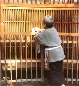 Echter, eerste voorwaarde was m’n guesthouse te vinden. Kyoto Station is het hectische centrum waar alles lijkt samen te komen en aangezien mijn telefoon sinds enige tijd zo ongeveer elke WiFi verbinding als onveilig bestempeld, en dus consequent weigert, is het best even zoeken (iemand tips om deze instelling te wijzigen? Is misschien wel veilig maar ook onhandig). De hamvraag begint al bij het station, namelijk welke uitgang te nemen en waarheen te lopen? Uiteindelijk arriveer ik bij het juiste metrostation maar dan nog de laatste hurdle, ik herinner me dat het 8 minuten lopen was vanaf dit station maar wederom de nogal essentiële vraag, in welke richting? Niemand herkent het adres en even twijfel ik of ik wel de juiste stad met juiste guesthouse combineer maar dat lijkt toch te kloppen. Wanneer ik uiteindelijk heel even roaming aanzet om Google Maps te activeren word ik meteen weer afgesloten, max verbruik overschreden. Dat is snel, na 30 seconden.. handig! Na (te) lang dwalen en navraag bij blijkbaar de verkeerde mensen word ik gered door een meisje van een museum. Ze spreekt engels en inderdaad, de straat staat niet op mijn ouderwetse papieren plattegrond vermeld, wèl op haar Google Maps. Met een al even ouderwets kruisje op de kaart en de straten tellend kom ik er uiteindelijk. Dat was dus iets langer dan 8 minuten, maar goed, meteen iets van de stad gezien. Gelukkig was ik vroeg vertrokken en ben ik alsnog op tijd om het guesthouse te overtuigen me een benedenbed te geven. Slaapzaal oké maar die bovenbedden vind ik echt een gedoe. Ook hier trouwens best gezellige houten hokjes met een gordijntje, dus is prima te doen.