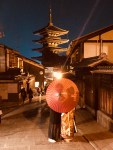 Als avondwandeling kies ik de Kiyomizu-dera Temple, prachtig in de herfstkleuren en met een zonsondergang boven Kyoto als bonus.
