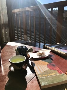 Tja, wat nog meer te vertellen? Ik val in herhaling als ik zeg dat het zen gevoel vanaf het eerste moment goed zat. En het werd niet minder, vergezelt door vele kopjes groene thee terwijl ik eindelijk een start maakte in een van de meegebrachte boeken. De lege spiegel van wijlen Janwillem van de Wetering, het was er de perfecte omgeving voor.