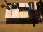 Eigenlijk is het allemaal ook wel lekker eenvoudig. Er kan niets op slot maar als je ergens sloffen voor de deur ziet staan is er dus iemand. Op blote voeten lopen doe je niet, alleen op de tatami matten in de kamers. Zo blijft alles lekker schoon. Deze sloffen regel geldt voor de toilet (want daar heb je de toilet sloffen) maar ook voor de badkamer, de slaapkamer, de eetkamer, eigenlijk overal. Schoenen laat je sowieso buiten, ik had ze de eerste avond ergens op de trap bij de hoofdingang laten staan en was ze dus de volgende dag kwijt. Ik heb het halve klooster afgespeurd en net toen ik ongerust begon te worden (het zal toch niet…, nee, niet hier…) wees een voorbijkomende monnik op een kast. En ja, daar stonden ze dus. Je moet het even weten. Of goed kijken want er hing een bordje.