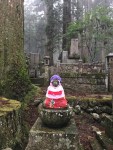 Ik had me niet bepaald voorbereid of ingelezen maar onderweg in de bus (just-in-time management heet dat geloof ik) las ik dat het een haast magisch en mysterieus pad moet zijn, met aan weerszijden oude graven en monumenten, leidend naar het mausoleum van Kobo Daishi, de grondlegger van Koyasan en van het geloof. Hij trok als priester naar China en koos daarna Koyasan om zijn school te gaan bouwen. We kunnen dus wel zeggen, het allerheiligste. Nu is het maar de vraag of deze goede man daadwerkelijk in z’n mausoleum ligt want volgelingen zijn overtuigd dat hij al honderden jaren zit te mediteren in z’n tombe, in afwachting van de toekomstige boeddha zodat hij de vertaling kan overbrengen. Wie zal het zeggen.