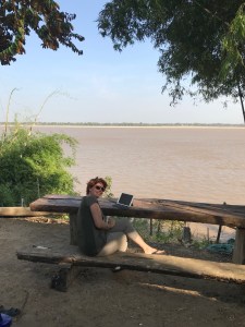 In Champasak heb ik een werkdag. Gelukkig maakt de locatie veel goed. Een boomstamtafel met de mightly Mekong als uitzicht. Natuurlijke airco door het briesje over de rivier en een redelijke WiFi verbinding. Wellicht ergonomisch niet verantwoord en Arbo technisch niet goedgekeurd maar, ik teken ervoor! Er wordt zelfs latte geserveerd aan m’n bureau, wat wil je nog meer?