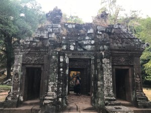 Kleiner dan zijn broers en zussen nabij Siem Reap maar mooi gelegen met terrassen op verschillende hoogten. Dat laatste had trouwens geen verrassing hoeven zijn want Wat Phu betekent bergtempel, lezen we achteraf. Tel daarbij op het feit dat er in Zuid Laos beduidend minder toeristen zijn dan in Angkor en je begrijpt, we vermaken ons uitstekend. Het lijkt nog steeds een plaats waar veel boeddhisten komen. Naast de heilige bron zien we mooie altaars. Daar veel biddende mensen inclusief de bijhorende wierook en offers. De tempels en ruïnes tonen her en der verfijnd beeldhouwwerk en eenmaal boven gekomen via de steile trappen word je beloond met mooie vergezichten. Soort stairway to heaven. De plek is duidelijk niet voor niets een World Heritage site, we geven UNESCO gelijk.