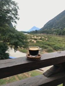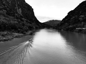Op vier uur bussen van Luang Prabang ligt het dorpje Nong Khiaw. Populaire bestemming die ik tien jaar terug had overgeslagen. We twijfelen, want hoe authentiek kan een dorpje aan een rivier nog zijn als het in elke reisgids genoemd wordt? Toch proberen, we zien wel. Wanneer verwachtingen laag zijn valt het vaak mee, al zitten de minibussen aardig vol. Na aankomst verspreid men zich over de vele guesthouses, het leek druk dus hadden we vooraf 1 nacht geboekt. Booking.com en TripAdvisor lieten nogal enthousiaste recensies zien, maar achteraf denk ik dat deze geschreven waren door de mensen die een kamer op de bovenste etage hadden. Daar namelijk een prima uitzicht. Echter, ze hadden ook een soort souterrain en dan kijk je uit op het nodige afval. Desalniettemin lijkt de kamer schoon en het bed met de roze Disney kinderdeken wordt romantisch verlicht door de enorme TL lamp dus wat wil je nog meer zou je zeggen? Ik voel me een beetje gammel en gaar dus na een leuke en mooie einde dag wandeling door het dorp en langs de Nam Ou rivier besluiten we een massage te nemen. Ik vraag om een gentle treatment, hetgeen goed ging met het olie gedeelte. Heerlijk en heel ontspannend met zacht gebrabbel op de achtergrond van de masseuses die onderling ‘god mag weten wat’ bespraken. Ook kwam af en toe een kindje langszij, waarschijnlijk om te vragen hoelang z’n moeder nog bezig was. Echter, het druk- en klopdeel van de massage was iets minder gentle. Zelden heeft iemand zo hard op m’n schedel gedrukt, fontanellen leken te moeten wijken en ook mijn nek werd hard aangepakt. Zal wel nodig zijn geweest al had ik de volgende twee dagen een licht zeurende hoofdpijn.