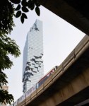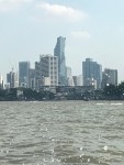 De bootservice over de rivier is echt een genot in een stad als Bangkok. Vaak druk, men probeert zelfs op de populaire opstapplaatsen de doorstroom middels megafoon te regelen, hetgeen overigens maar zeer beperkt lukt. Heerlijk om naar te kijken, onderwijl zorgt een verkoelend windje ervoor dat je huid net iets minder plakkerig aanvoelt. Voor even dan. Ook is het leuk voor het overzicht van de stad. Oude tempels en hypermoderne architectuur lijken kriskras door elkaar te staan, soms ook nog wat oude koloniale huizen ertussen. Mooi om vanaf het water één van de laatste, en vooralsnog hoogste, creatie te zien: de MahaNakhon toren van Ole Scheeren. Onmiskenbaar een OMA creatie (Rem Koolhaas).
