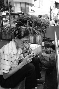 Er is een grondig online vooronderzoek uitgevoerd, inclusief veelvuldig mailcontact met AV Camera. Dit zorgt dus ook nog voor een gerichte actie want we weten waar we naartoe moeten en eigenlijk staat reeds de gewenste tweedehands Fuji X100F al klaar. Ze zijn daar duidelijk experts en liefhebbers, ik voel me volledig een buitenstaander met m’n iphone foto’s en kijk maar wijs een beetje mee. Deze shop hadden we zonder het World Wide Web nooit gevonden, want niet bepaald gevestigd in een logische buurt en ook de uitstraling vanaf de straatkant is wat twijfelachtig. Maar, zoals gezegd, super kundig en super service en na de creditcard getrokken te hebben lopen we blij als een kind weer de stadse hitte in. De eerste foto’s worden geschoten, geen Thai lijkt te ontkomen aan zijn camera. Wellicht handig om de opslagcapaciteit van de cloud te gaan controleren, ik gok zomaar dat er een upgrade gaat plaatsvinden…
