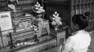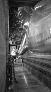 Na nog een stop bij de, altijd weer verrassend grote, reclining Buddha van Wat Pho èn een vergeefse zoektocht naar een geldwisselkantoor die onze Laotiaanse kips wil accepteren, (want ja, we vonden opeens nog een flinke voorraad en nee, niemand buiten Laos wil kips hebben, ondanks de grote hoeveelheid nullen per bankbiljet) is het alweer tijd voor de inmiddels bekende rit richting vliegveld. Bangkok blijft deze reis gelimiteerd tot een overstap hub: Van Japan richting Cambodja en van Laos richting India. Gelukkig zorgt het heerlijke street food met een Chang biertje en de Chao Phraya rivier taxi iedere keer weer voor een vertrouwd gevoel. We zijn klaar voor de volgende bestemming, met het fototoestel in de aanslag.