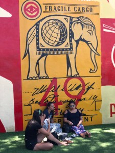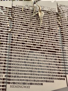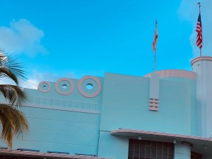 Al direct aan het strand zie je ook de vele pastelkleurige Art Deco gebouwen. Er schijnen hier ruim 900 historische gebouwen te zijn, natuurlijk heb ik slechts een fractie gezien, grotendeels lopend door Lummus Park. Strand rechts, Art Deco links. Maar ook in de straten rondom mijn guesthouse zijn ze volop aanwezig. Voor het eerst lees ik er wat meer over dus nu zegt de naam Henry Hohauser me ook iets. Ooit in Napier (Nieuw Zeeland) ook al wel wat gezien maar ik kan me eerlijk gezegd meer de wijn herinneren die ook uit dat gebied kwam. Hier in Miami is het aqua kleurige gebouw met alle rondingen waar nu (de vreselijke keten) Señor Frogs gevestigd één van m’n favorieten, samen met de connecting Orb. De connecting Orb is een soort mega grote witte strandbal, hoog in de lucht, geklemd tussen twee gebouwen. In dezelfde steeg is ook Poeti te vinden. Ik heb er helaas geen optreden gezien (schijnt soms op het dak plaats te vinden) maar de gedichten die in het staal verwerkt zijn lieten me altijd even stoppen, evenals dus die grote bal. Het was namelijk toevallig deze steeg die de kortste route was richting strand en dus liep ik er minimaal 4x per dag, meestal met een koffie in de hand.