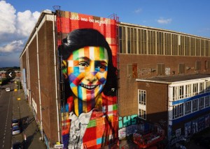 Ik besluit de koelte op te zoeken middels de expositie van Eduardo Kobra – Larger than Life. Heel soms is airco fijn (en nodig). De expositie biedt mooi werk met interessante achtergrond info want zijn werk heeft veelal een humanitaire, sociale en/ of politieke boodschap. Zo wist ik niet dat zijn muurschildering van AnneFrank (NDSM Werf in A’dam), zijn keuze als onderdeel van het project Looking at the Peace, niet zonder slag of stoot geaccepteerd werd. De lokale autoriteiten wilden schijnbaar graag dat hij voor Spinoza koos, hetgeen gelukkig niet gebeurd is. De muurschildering heeft de mooie titel Let me be Myself. Eigenlijk heeft elk werk wel een verhaal. Zo lees ik dat Little ballerina of 14 years (Verwijzing naar La petite danseuse de quatorze ans van Edgar Degas) de Pinheiros buurt in São Paulo geholpen heeft aan een positiever en veiliger imago, de ‘Stairway of the ballerinas’ is inmiddels een populaire toeristenspot waarbij ook de omliggende straat, de muren en bankjes nieuwe (ballet)sterren laat stralen. Wellicht vergelijkbaar met Wynwood in Miami. Art makes the difference. Ook is Gustav Klimt weer van de partij, Kobra gebruikt de levensboom voor een noodkreet tegen de ontbossing. Het kan geen toeval zijn dat het werk van Klimt de laatste tijd zo vaak mijn pad passeert. Mooi. Ben benieuwd naar de test prints van het behang wat thuis op me ligt te wachten. Wel of geen 4 bij 2 meter Klimt achter het bed, that’s the question.