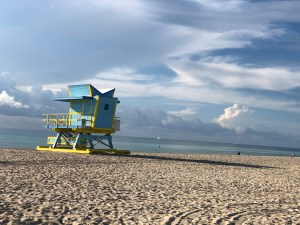 Het is zo lekker om even alles los te laten, gewoon het water en de stilte te ervaren en te genieten van het moment, om vervolgens te ontbijten met een yoghurtje en met Ayub Ogada in de oortjes.. Heerlijk met een hoofdletter. Ik merk dat ik mijn break out in de wintertijd echt gemist heb, ik verlang naar vrije tijd en vakantie. Eigenlijk vooral naar ‘niets moeten’. Hetzelfde ritueel aan het einde vd dag, bijna helend, drie dagen lang, ik zou er zomaar aan kunnen wennen. Rond zeven uur vertrekken de meeste mensen en is het heerlijk lopen met de voeten in t zand en de branding. De drukte concentreert zich rondom de kleurige en iconische lifeguard towers, alsmede daar waar de parasols en bedden worden neergezet. Mijn favoriete stek is bij 14th Street, vandaar uit slenter je in zo’n twee uur naar het zuidelijke puntje, South Pointe. De architectuur en felle kleurencombi’s van die strandhuisjes zijn bijzonder te noemen en zijn populaire objecten voor de foto, meestal met poserende chunk / chicks erbij, of nog vaker met een wanna-be chunk… Badkleding verhult weinig zullen we maar zeggen.
