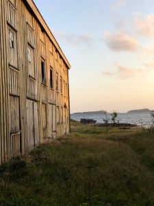 Vanaf Gothenburg naar het plaatsje Dingle, gelukkig heeft Google Maps er wel van gehoord en direct krijgen we de beste connectie voorgeschoteld. Hoe eenvoudig is het toch om zo te reizen. Met smartphone en creditcard lijk je in Zweden een heel eind te komen. Drie bussen verder en tweeëneenhalf uur later stappen we, keurig op schema, uit bij de bushalte. Er is echter helemaal niets daar, zelfs geen bushokje, wat voor mensen zouden er in Dingle wonen? We kijken een beetje suf en onwennig in het rond, het miezert en we zoeken naar een auto met een Nederlands kenteken. Dit laatste lukt gelukkig heel snel, al moeten we wel echt recht voor de auto gaan staan willen we ook daadwerkelijk gespot worden, blending in nicely? Hoop het eigenlijk niet want zoals gezegd, van Dingle en de bewoners ging mijn hart nu niet meteen sneller kloppen. Dit gebeurde overigens wel wanneer we een kleine 20 minuten later via groene landweggetjes stoppen bij een rotsige baai met een paar houten huisjes en grote verlaten loodsen.