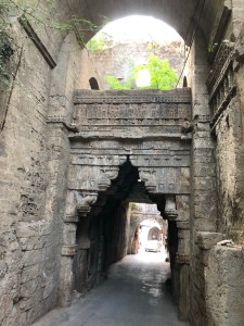 Maar… er zijn vele legendes in India dus even googlen en je vindt verschillende en uiteenlopende verhalen. Ik zou zeggen, kies dat wat je het meeste aanspreekt. Feit is dat de oorspronkelijke toegangspoort veel goeds belooft. Een prachtig voorbeeld van een torana, vrijstaand en fijn bewerkt. Het bijzondere is dat daar overheen twee later gebouwde poorten in Indo-Saracenic stijl staan. Zo zie je goed die tijdspanne.