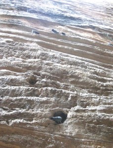 Iets verderop nog een step-well. De Navghan Kuwo. Gehouwen uit kalksteen, met spiraalvormige trappen. Moet in het verleden toch ook mooie inscripties hebben gehad, maar heeft dringend onderhoud nodig. De vele duiven (bovenaan) en vleermuizen (het diepere donkere deel) helpen ook niet om het geheel tot een fijne en toegankelijke afdaling te maken. We keren al snel om.