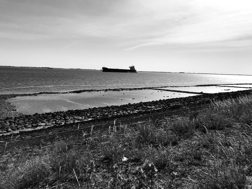 Ik vind de rust om me heen eigenlijk wel fijn. Smalle landweggetjes met als enige tegenligger een oudere man op een zo mogelijk nog oudere fiets, het lijkt alsof hij een nachtbril op heeft. Zo één met gele glazen. M’n moeder had die altijd in haar auto liggen. In het dashboardkastje. Daardoor weinig effectief, maar ze had ‘m wel. Denk eigenlijk nog steeds, niet aan slijtage onderhevig. Hans Warren zou er zo een gedicht aan hebben kunnen wijden, over die man op de fiets. Misschien ook wel gedaan, in een van zijn vele geheime dagboeken. Warren, de schrijver en dichter uit Borssele. Let op, Borssele met dubbel s, anders leidt google je ergens anders heen (weet ik uit ervaring). We gaan op zoek naar wat historie en belanden bij een poëziepaneel, geplaatst op een plek wat het einde van de wereld lijkt. Vol in de wind, aan de waterkant met op de achtergrond de kerncentrale. We lezen ‘onweer’ en snappen de locatie. Gelukkig schijnt de zon.