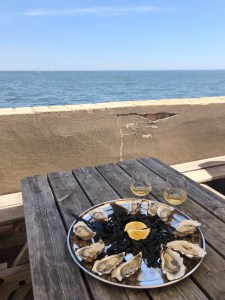 We keren weer terug naar Yese, eten de laatste oesters iets verderop aan dezelfde waterkant en keren langzaam weer huiswaarts.