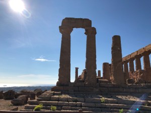 Terwijl we erheen lopen bedenk ik dat het eigenlijk vreemd is dat het de vallei wordt genoemd aangezien het meer op een heuvel ligt. Om het even, het ligt buiten het huidige stadje en de tempels maakten ooit deel uit van de Griekse stad Akragas. ‘De mooiste vergankelijke stad, waarvan de inwoners bouwen voor de eeuwigheid maar leven alsof er geen morgen bestaat,’ aldus de schrijver Pindarus.