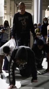 Ons avondprogramma is van een geheel andere aard. Via lijn 3 en 9 gaan we naar het 16e arrondissement, naar Palais de Tokyo om precies te zijn. Joris heeft kaarten weten te bemachtigen voor de performance welke onderdeel uitmaakt van de tentoonstelling Natures Mortes. Bijzonder, want alleen de laatste twee weekenden in oktober wordt deze tentoonstelling tot leven gebracht. De rij om binnen te komen is minstens zo bijzonder. Samen met ruim 600 andere bezoekers staan we in een zich meermaals de-hoek-om-buigende rij tot we het statige kunstpaleis mogen betreden. ‘Congestion est un concept’. Het gebouw is gemaakt om kunstenaars een plek te geven om te experimenteren met hun artistieke geest, aldus de website. Nou, dan zitten we wel goed met Anne Imhof. Skaters tussen de marmeren beelden, brullende crossmotoren bij de ingang. Gelukkig geen Dobermanns zoals bij een van haar eerdere tentoonstellingen.