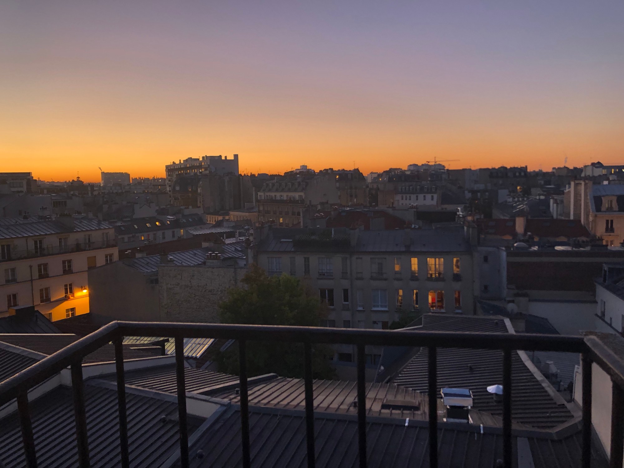 Na de schrik veel gelach. Het bed wordt snel opnieuw verschoond en Jerome verkast naar de andere ruimte. Wij nemen nog een klein slokje terwijl we over de daken van Parijs kijken. Van de vino superiores over naar les grands vins de France. Sous le ciel de Paris. Moeilijk kiezen, maar ik ga geloof ik toch voor de versie van Yves. Sorry Juliette. Sorry Édith. Of misschien gewoon alle drie de versies afspelen, met nog een extra glaasje.