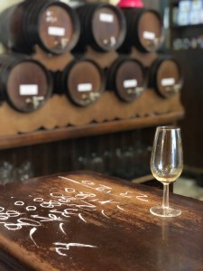 Morgen de uitslag. We drinken er nog maar eentje op een goede afloop. Onderwijl wordt een oudere man met rolstoel en al de bar ingereden. Hij lijkt op stap met zijn kleinkinderen die vrolijk een drankje nemen, meezingen, wat flamenco achtige danspassen maken en vooral plezier hebben. Het emotioneert ons allebei, de onvoorwaardelijke liefde die , zelfs vanaf de andere kant van de bar, zo overduidelijk zichtbaar is. Het gemak waarmee de man deels wel en deels geen onderdeel is van de groep, de ouderdom en de glimlach die hij af en toe laat zien, zijn soms heldere, soms verwarde blik. Ze sollen haast met hem, maar op zo’n liefdevolle manier. Uiteindelijk wordt er een groepsfoto gemaakt en we raken aan de praat. Het blijkt dat ze hem overal mee naar toe nemen. Ik hoor Colombia, Parijs… ik weet niet goed waarom, maar het brengt een traan. Op een van de vaten nabij hangt een bordje met Lágrimas. Toepasselijker kunnen we het niet afsluiten en we toosten op het leven terwijl de barman met zijn witte krijtje de rekening opmaakt.
