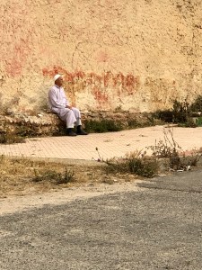 Wanneer we richting de doorgaande straatweg lopen is dat vooral voor de koffie. Naar links betekent een klein onbeduidend tentje maar met lekkere koffie en een zitje op de stoep. Parasol wordt direct aangesleept, mogelijk omdat ik de enige vrouwelijke klant ben. Naar rechts betekent een bestelbusje bij de bushalte. Busstation lijkt wat overdone aangezien er slechts een kaal veld is, maar dat is het eigenlijk wel. Of een multi user, grand taxi halte, mag ook. Er is in ieder geval geen cafetaria of iets wat erop lijkt. Überhaupt geen gebouw. Echter .. dus wel een bestelbusje. Elke dag. Met zodra de achterklep open gaat een barista service waar je U tegen zegt. Die jongen gaat er volledig voor, het duurt ook echt even. Hij raffelt niets af, ongeacht of de grand taxi op het punt van vertrekken staat. En lekker dat z’n koffie is! Hij heeft geen melk, doen ze hier niet aan (waarschijnlijk ook wel verstandig zonder koeling), maar zelfs ik drink het zwart. Hier geen tafeltje, krukje of stoel, wel een mooi wit geverfd muurtje waar je prima op kunt zitten. Ook hier geen vrouw te bekennen, het is me duidelijk dat koffie drinken een mannen aangelegenheid is. Nu spreek ik toch amper Frans, laat staan Arabisch, dus ik laat Joris lekker ouwehoeren terwijl ik heerlijk op het muurtje zit, bengelend met m’n benen en de wereld aanschouwend. Le nouveau riche de Casa komt ook langs. Dan laat je dus je auto met airco draaien terwijl je je eigen Nespresso glaasje laat vullen. En dan vooral het merk op het glaasje goed laten zijn. Het leven in Oualidia is voor ons gelukkig een stuk eenvoudiger.