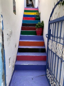 We hebben de tijd aan onszelf, maar de vele moskeeën zorgen er gezamenlijk voor we toch een soort ritme houden. Uiteraard zorgen ze er ook voor dat niemand vergeet om 5x per dag de shahada uit te spreken. Vanaf de vele minarets wordt aangekondigd wanneer het tijd is voor het gebed. De centraal gelegen locaties blijken populair en zijn duidelijk te klein voor de aanloop. Terwijl wij op de stoep van de ‘hoofdstraat’ van een tagine genieten wordt er direct naast me een lang kleed uitgerold, soort loper. Het is tijd voor het maghrib gebed, de een na laatste van de dag. Binnen 5 minuten is datzelfde kleed vol met biddende mannen. Ik hoor de voor mij onverstaanbare teksten op rechts terwijl recht voor ons de zee ligt. Op ons bord een boterzachte zoete kip met uien en rozijnen. Het zijn dat soort momenten waar ik zo van geniet.