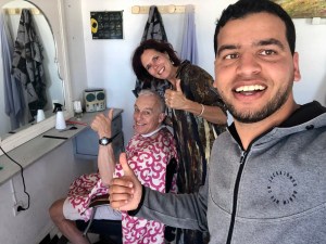 Aan het einde van hetzelfde kale veldje staat nog een ander muurtje. Hierop staan zo’n beetje alle automerken geschilderd. Twee grote ijzeren deuren zijn de entree naar een outdoor garage. We lopen er elke dag langs en willen eigenlijk stiekem eens om het hoekje te kijken en een foto maken voor BMW, altijd leuk voor een van de bezoeken op hun hoofdkantoor in München. Maar dat stiekeme gaat hier mooi niet door. Direct komt de grote baas naar ons toe en worden we uitgenodigd voor de thee met allerlei lekkers. Daar is de Zweedse fika niets bij. Het is gezellig. soort vrijdagmiddag borrel maar dan met thee, plat brood, kaas, olijven, honing en wat onduidelijke smeerseltjes. Helaas is hun Frans even slecht als ons Arabisch dus van een goed gesprek is geen sprake. We maken maar wat foto’s, voelt wel een beetje ongemakkelijk. Althans, voor mij. Joris heeft er beduidend minder last van.