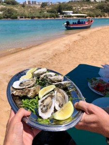 In augustus schijnbaar vol met de wat meer welgestelden uit Marrakesh en Casa, maar in mei nog stoffig en rustig met enkel de bewoners en een verdwaalde of gestrande toerist. We hebben een sfeervol appartementje met ruim terras en waanzinnig uitzicht over lagune en de zee. Flinke golven beuken tegen de rotsen, naast oesterparadijs dus ook surf walhalla. Fatima regelt de B&B ( of eigenlijk de B want geen ontbijt) vanuit Istanbul alwaar ze Engels studeert. Lang leve whatsapp. Want geen bordje op de deur of een ander teken van herkenning dus videobellen was echt wel noodzakelijk om de woning überhaupt te vinden. Extra fijn dat de simlock is opgelost ( zie vorige blog). Achteraf blijkt dat moeder en zus direct onder ons wonen, maar via Istanbul kan het dus ook.