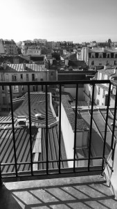 Nog voor de tweede grensovergang en na de eerste file (Antwerpse ring is altijd feest) is de bestemming geraden. Na zo’n 5 uur rijden we de BP op. De jarenlange ANWB alarmcentrale van de passagier werpt haar vruchten af. De nummers van de wegen zijn bekend, maar dus ook de afkortingen. Boulevard Périphérique, daar was ik niet opgekomen. Die 35 kilometer lange ringweg rondom Parijs. Daar waar het, net als in Antwerpen, altijd vast staat. Maar… naar Parijs in augustus betekent dat de stad ‘leeg’ is. Het is warm en de Parijzenaren (Parijzenaars?) zijn de stad ontvlucht. Misschien niet alle 2 miljoen, maar blijkbaar voldoende om eenvoudig en zonder stress of verder oponthoud de parkeergarage te bereiken. Deze is met zorg vooraf uitgekozen zodat het risico op smalle haakse bochten met steile hellingen en onmogelijke kleine plaatsen minimaal is. Dat is namelijk geen match met El Nuevo en zeker niet met mij, laten we vooral het Verona trauma vermijden. En dat lukt – la préparation est tout! Vlotjes en zonder al te veel protesterende parkeersensoren staan we daar waar we willen, plek 2021 en 10 minuten later staan we reeds onderaan de twaalf trappen richting de zolderkamer. De minuscule en vooral oude lift laat het deze keer afweten. Nu vertrouw ik ‘m sowieso nooit, maar hij is wel altijd handig voor de bagage, ook al is dit, ook deze keer, zeer beperkt. Travel light is het motto, zeker met temperaturen rondom de 35 graden. Enfin, ik sleep de tassen de trappen op terwijl Mo bovenaan reeds kennis maakt met Jérôme. Goed voor de conditie en het uitzicht maakt het altijd goed, zo ook nu.