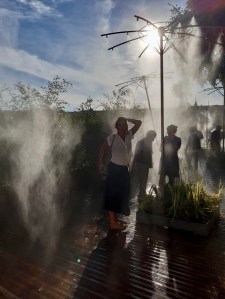 Slenteren is wel het werkwoord van deze dagen. Geen idee hoe dit goed te vertalen. Eigenlijk is het slipperen. 30 jaar vriendschap is, zo blijkt achteraf, goed voor 30 km slenteren / slipperen. De stappenteller draait overuren, ook al zijn Android en Apple het zelden eens. Geldt niet alleen voor de stappentellers, ook de weersvoorspelling is niet eenduidig. Niet dat we die echt nodig hebben, het is simpelweg warm. Punt. Erg warm. Maar, er is altijd ergens schaduw en de nevel douches bij de water tappunten zijn een feestje. Super lekker!