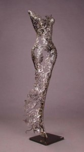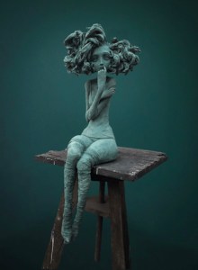 Ook mooi werk van de Française Valerie Hadida, bronzen tengere vrouwen met contrastrijke wilde haren. Later vind ik deze omschrijving over één van haar werken: