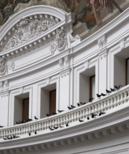 Net als het Gugenheim in New York is alles hier rond. Ik vind de grijze betonnen cylinder wel spannend in combinatie met de mozaïekvloer, de panorama wandschildering (gerestaureerde fresco’s klinkt waarschijnlijk beter..) en de enorme, echt prachtige 150 jaar oude koepel met een glazen dak. Het getuigt van lef om dat te combineren, mooi! De Japanese architect Tadao Ando blijkt er verantwoordelijk voor te zijn.