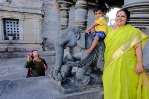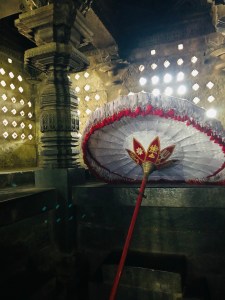 Op deze Shiva tempel is meer dan 200 meter aan unieke bewerkingen te bewonderen. De krijgerscènes zijn duidelijk, evenals de afbeeldingen uit de Kama Sutra. Anderen hebben voor ons meer uitleg nodig, maar de kwaliteit van de gidsen is niet van dien aard dat we er wijzer van worden. Een uitzondering is het mooie Jaïn Basadi complex waar we min of meer per ongeluk arriveren. We ontmoeten daar een broodmagere man van 59, die ruim 70 oogt. Hij verzorgt al 25 jaar deze drie tempels en heeft deze taak van zijn vader overgenomen. Met zijn zaklamp laat hij details zien die we anders zeker gemist zouden hebben. Hij is zó vriendelijk en bescheiden. Er zijn geen andere bezoekers en de sfeer is bijzonder. Sereen is denk ik de beste omschrijving. De ligging in het groen bij het meer Dwarasamudra maakt het af. Gek genoeg voelen we ons beiden bijna in Egypte: grote beelden in het duister van een prachtig bewerkte ruimte. We weten vooralsnog te weinig van Parshvanatha, Shantinatha en Adinatha, maar eigenlijk maakt dat niets uit. Het is zo’n pareltje waar je per ongeluk tegenaan loopt en wat de dag zo extra bijzonder maakt.