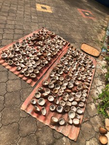Dat betekent een vroege trein. 6.30 uur vertrek. Ashok is al op om ons uit te zwaaien. Hij is druk bezig om zijn kokosnoten te laten drogen. Deze worden daarna verkocht en gebruikt om olie van te maken. Zo’n lieve man. Gepensioneerd na jarenlange dienst als assistant manager bij SBI (State bank of India). De bank die mijn Triodos pas maar niet wil accepteren. Omdat hij wat te doen wil hebben – naast de kokosnoten – heeft hij op de eerste verdieping van zijn huis twee appartementen voor de verhuur. Zoonlief regelt het digitale Airbnb gedeelte, hij regelt alles na aankomst. Wel fijn, want geen van de riksja chauffeurs weet het te vinden dus een goed gesprek voor vertrek tussen Ashok en chauffeur doet wonderen.