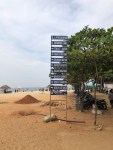 We zien een paar ligbedjes met parasol. Te reserveren en af te rekenen per half uur. Goed idee, nu we hier toch zijn. Verder langs de rand kraampjes met allerhande plastic speelgoed en andere ellende. Voor een simpel koffie stalletje moeten we beduidend langer zoeken. Maar het water is lekker en op de ligbedjes worden we met rust gelaten. Aan het kijken op een afstandje ben ik inmiddels gewend geraakt. Het is een kwestie van zo ver mogelijk met sarong om richting zee lopen en dan snel de golven in. Joris mee als chaperon.