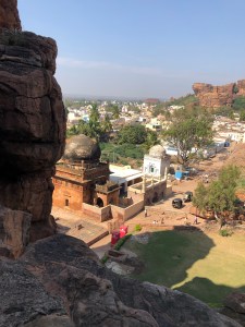 Ooit was Badami zo’n tweehonderd jaar lang de hoofdstad van de Chalukya’s. Om precies te zijn van 556 tot 753 en hier vinden we een van de eerste voorbeelden van de Dravidische tempel bouwkunst. De historie van dit land is zo rijk dat het me af en toe duizelt. Tegelijkertijd vormt de puzzel met de tijds vakken zich langzaam tot een geheel. Deze rots tempels van Badami behoren tot een soort circuit dat de evolutie van de Indiase tempel kunst laat staan. Aihole en Pattadakal vallen ook onder dit circuit. Ook aantrekkelijk. Toch staan we deze over, met name om het risico van tempel moeheid te vermijden en de reistijd te beperken. Keuzes maken, nooit mijn sterkste kant, het lijkt me allemaal zo mooi. Enfin, wij kiezen voor Badami en zijn vier heiligdommen uit de 7e eeuw.