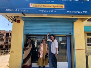 Waar de deuren – en zelfs een rolluik – wel opengaan, ook voor dames, is bij de geldautomaat van de Canara Bank. Door ons steevast Kanarie Bank genoemd. De nabij gelegen ATM was dicht en ook bij de bank iets verderop is er geen. Men probeert ons vriendelijk maar beslist naar een filiaal aan de andere kant van de stad te sturen. Wanneer ik echter heel sip kijk en wat loop te dralen komt de bank directeur uit zijn kantoor. Het gebeurt niet vaak dat hij buitenlandse klanten heeft en dus gaat hij de ATM voor vijf minuten aanzetten en openstellen zodat wij ons geld kunnen opnemen. Hij vraagt vooraf hoeveel we nodig hebben en vervolgens gaan we met twee dames en een sleutel op pad. Het werkt! Dat is pas een voorbeeld van client centricity. Direct na ons bezoekje wordt de boel weer afgesloten.