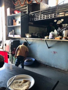 We vieren het feit van een verse voorraad roepies met een Punjab thali nabij. Net als bij de bank zijn we ook hier een bezienswaardigheid. Een engineer die net zijn stage heeft afgerond in Bremen komt bij ons zitten. Hij is bij zijn ouders op bezoek en haalt eten op voor de lunch. Volgens hem zijn we in het beste restaurant van de wijk terecht gekomen. Dat is mooi meegenomen en mogelijk heeft hij gelijk want het smaakt weer verrassend goed. Hij moet er zelf snel vandoor, z’n vader heeft trek en zit te wachten. Even later biedt hij via LinkedIn nog zijn hulp aan aan ‘Frau Rogier’, mochten we dit nodig hebben. Zo attent!