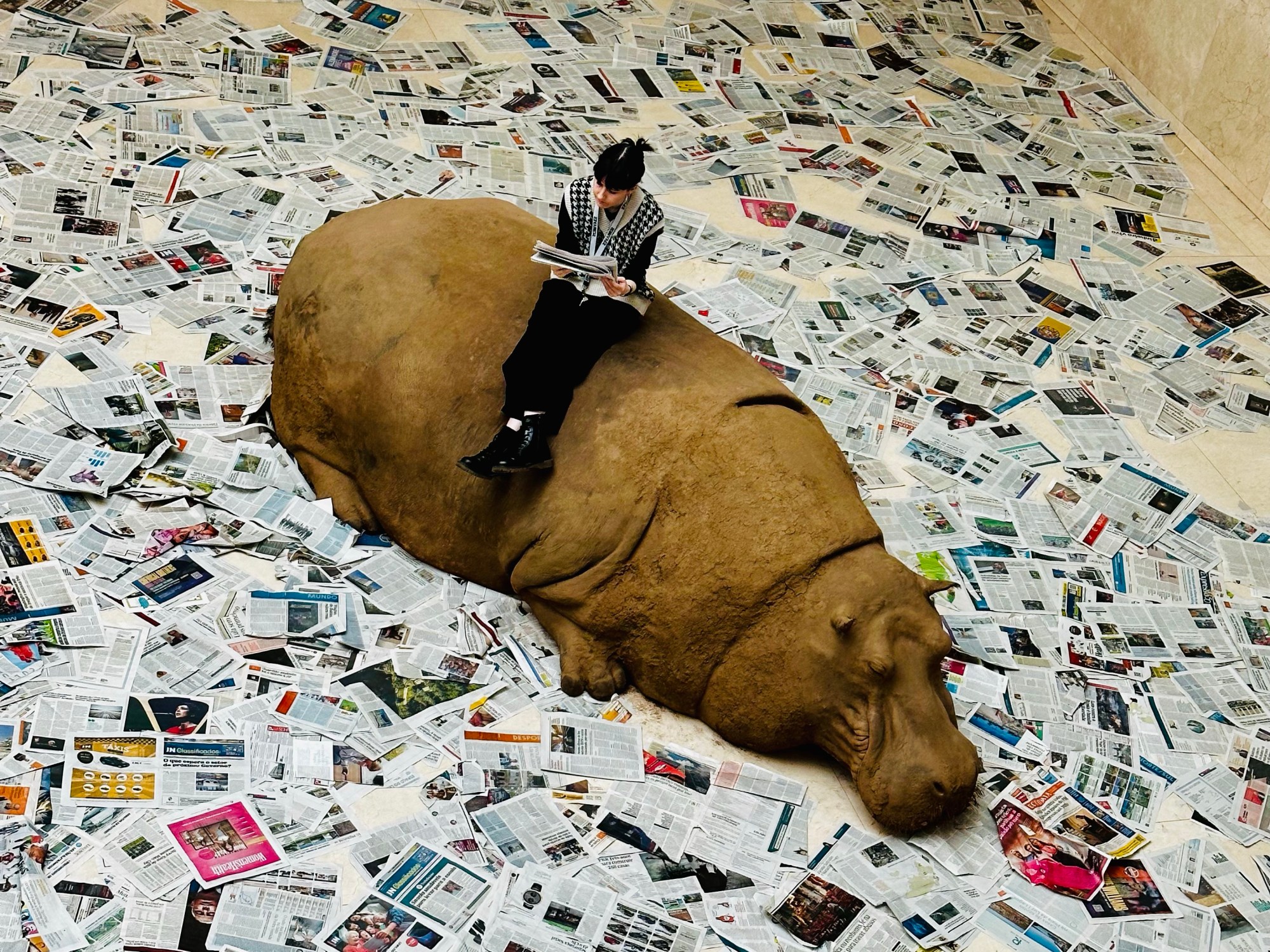 Aan de rechterkant van het museum heel ander werk, van Carla Filipe, een Portugese kunstenares en de expositie is net geopend. We schelen slechts 2 jaar, het is echt ongelofelijk hoeveel werk ze al heeft gemaakt. Het blijkt een collectie van 22 jaar werk te zijn; tekeningen, installaties, karton, sculpturen, veel getypte tekst (onder andere over Rotterdam) en collages, schilderijen, posters en wat al niet meer. Het is altijd leuk om een kunstenaar te ontdekken die je nog niet kent en vervolgens onbevooroordeeld (en onwetend) op zo’n tentoonstelling rond te lopen.