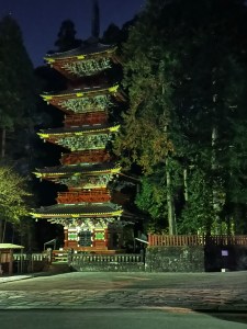 Nikko, reeds vele eeuwen een centrum van Shinto en Boeddhistische aanbiddingen. Dus ruim voordat het Toshogu mausoleum en de shinto-schrijnen rond 1600 werd gebouwd. Daar waar Nikko nu vooral bekend om is. We besluiten om deze beroemde tempels en schrijnen van Nikko bij het bijna volle maanlicht te gaan bekijken. Althans, een deel want er blijken meer dan 100 heiligdommen te zijn. Het avondlicht begint hier al vroeg. Zonsondergang is rond half vijf. Vreemd genoeg lijken we de enigen te zijn met dit idee. Waarschijnlijk omdat de complexen na 4 uur gesloten zijn. Nog vreemder is dat er helemaal geen bewaking of hekken zijn. We praten hier tenslotte toch over UNESCO monumenten. We zijn Rémi alleen en het is prachtig in het maanlicht.