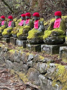 We lopen langs de Daiya rivier en passeren de lange rij ghost Jizo’s met hun rode gehaakte mutsjes om vervolgens bij de Kanmangafuchi Abyss te arriveren. Via het oude stenen pad en de vele trappen naar de hoogste tempels en de fontein die door sake brouwers werd aanbeden omdat het zuivere water hielp om de beste sake te maken. De enorme cederbomen passerend en dwalend langs de Junshi graven: de mannen die ritueel zelfmoord pleegden om hun meester, de derde Tokugawa shogun, te volgen. Het is allemaal even bijzonder en het loont dus om wat buiten de gebaande paden te lopen. Een paar extra kilometers en niks geen drukte.