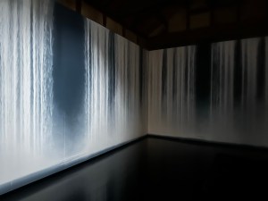 Ik had, na het Chichu museum, hoge verwachtingen van het mini project van James Turrell en Tadao Ando. Minamidera. Aan de buitenzijde een zwarte doos, binnenin is het zo mogelijk nog zwarter. We mogen binnen, strenge instructies, handen betasten een wand, houvast, een bankje om te zitten. Wennen aan het zwartste zwart, heel langzaam lijk ik weer iets te zien. We mogen lopen. Er lijkt een scherm te zijn, maar m’n ogen bedriegen me. Er is niets. ‘The process of slowly finding light’ ging voor mij niet op, of in ieder geval te langzaam.
