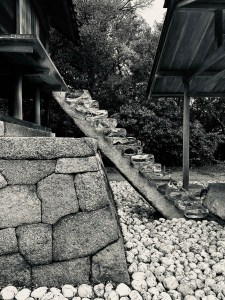 We lopen ook nog even de heuvel op richting de Go’o Shrine van Hiroshi Sugimoto. Een glazen trap die de onderwereld met de bovenwereld verbindt. Mooi!