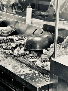 Natuurlijk verlaten we het eiland niet zonder ook de oesters te proeven. Ze waren al lekker in Hiroshima en moeten hier nog beter zijn. We zitten goed in het seizoen en laten ons verwennen bij Kakiya, daar waar gek genoeg geen rij staat. Dom van die mensen want het is een super lunch adres waarbij het set menu je oesters brengt zoals we ze niet vaak gegeten hebben. Buiten roken we reeds de geur van gegrilde oesters en ze zijn zo lekker als de geur deed vermoeden. We krijgen ze echter ook rauw, gemarineerd in druivenpitolie met wat cayennepeper, gestoofd waarbij ook de rijst doordrenkt is van de ziltzoete oester smaak en als laatste goudbruin gefrituurd in knapperig beslag. Als je er doorheen bijt, voel je het vocht en de sappigheid van de oesters door je mond stromen. Perfectie, ik word er gelukkig van. We eindigen de maaltijd, zoals het hoort, met een miso soepje. Ook hierin oesters, zacht gekookt wat ook weer die typische zout/zoet combinatie geeft.