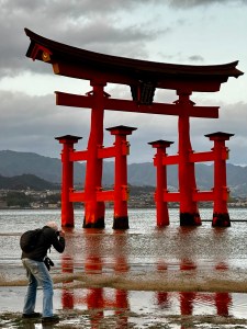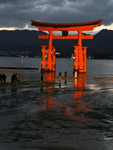 Wel lees ik nog wat over het eiland, dat formeel Itsukushima heet. In de volksmond beter bekend als Miyajima, letterlijk vertaald heiligdomeiland. Dit eeuwenoude Itsukushima-heiligdom is vooral bekend geworden door de meest gefotografeerde torii poort van het land: de rode, ‘zwevende’ torii poort. Optisch zwevend bij hoog tij, op het wad bij laag tij.