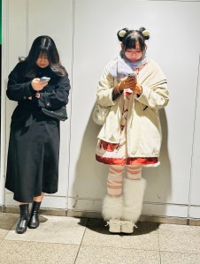 Tokio station is druk. Net zo druk als Osaka station een paar uur geleden en inmiddels op 500 km afstand. In het zuidwesten, daar waar de mensen opener en toegankelijker zijn. Daar waar ze meer lachen. Aldus Jen, die hier toch echt al wel heel wat jaar verblijft. Ik geloof niet dat ik het verschil heb gemerkt, daarvoor zullen we toch echt veel langer moeten blijven, alsmede iets meer van de taal oppikken. Het is gek, maar als je er helemaal niets van verstaat en ook het schrift niet kan ontcijferen, dan gaat het letterlijk langs je heen. Je let op lichaamstaal en doet aannames. Héél veel aannames, want de vele mondkapjes zorgen voor een extra barrière. Deze zomer las ik een artikel in het NRC : vele redenen waarom er nog steeds zoveel mondkapjes worden gedragen, ook een aantal die ik niet had kunnen bedenken. Wel weet ik nu nog beter hoe belangrijk ogen zijn, want dat is wat er overblijft. Zoals de aardige dame die door Joris geholpen werd met haar bagage. Ze krijgt het stempel ‘aardig’, puur door haar ogen. Ze ‘lachen’ en kijken positief de wereld in. We zullen echter nooit weten waar ze naar toe gaat met die enorme hoeveelheid bagage.